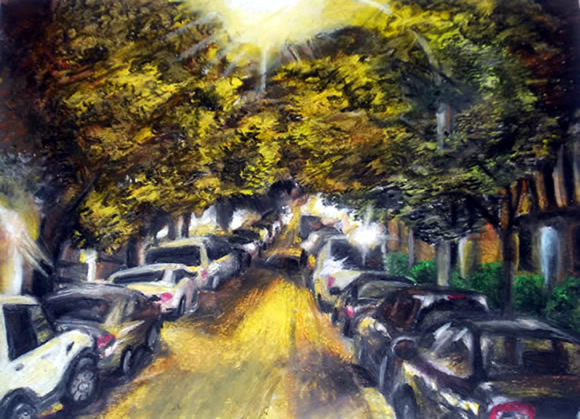 "untitled avenue " oil pastels on paper. 16"x20" 2010