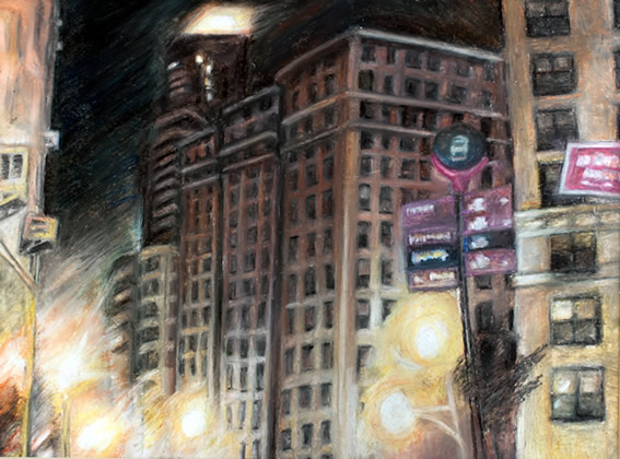 "east 79th " oil pastels on paper. 16 "x20" 2011