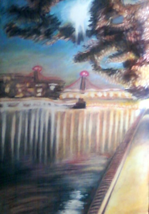 "untitled river side" oil pastels on paper. 12"x18" 2011